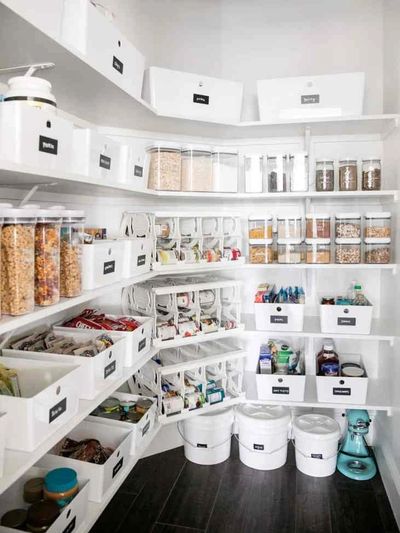 And the final stage, Containing, is where we take all the grouped objects and put them into clear containers and boxes of all sorts and sizes. With everything contained, we then put them in or on any shelving or open, designated space to create a final and satisfying finish.